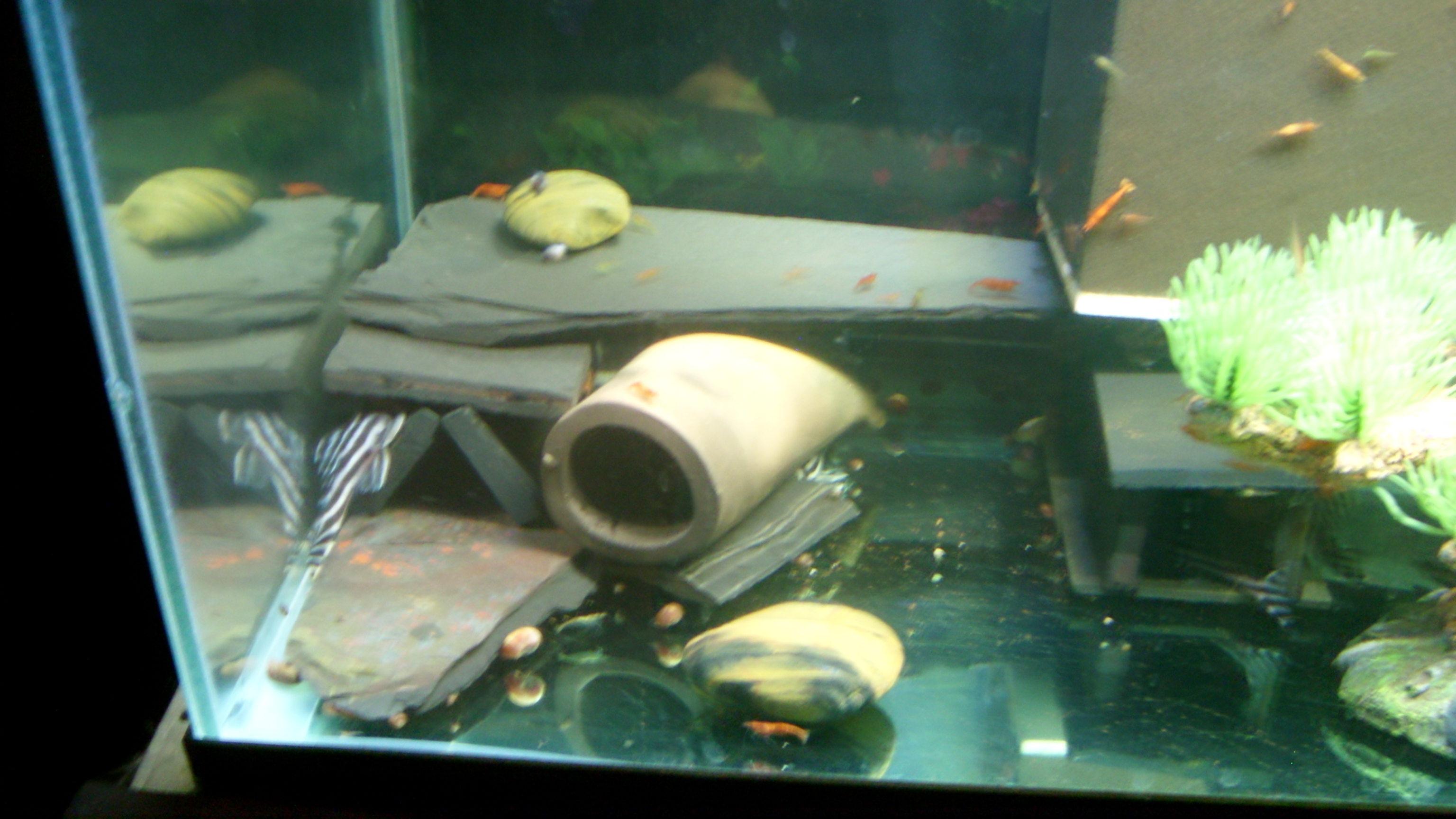 The plan is to put 13 adults in this tank....I haven't put anything in there just yet so I figured I'd post it and see if anybody has any warnings or recommendations. The Cherry Red Shrimp seem to be doing fine so I was planning on adding a fish or two tomorrow. I used water from my other zebra ...