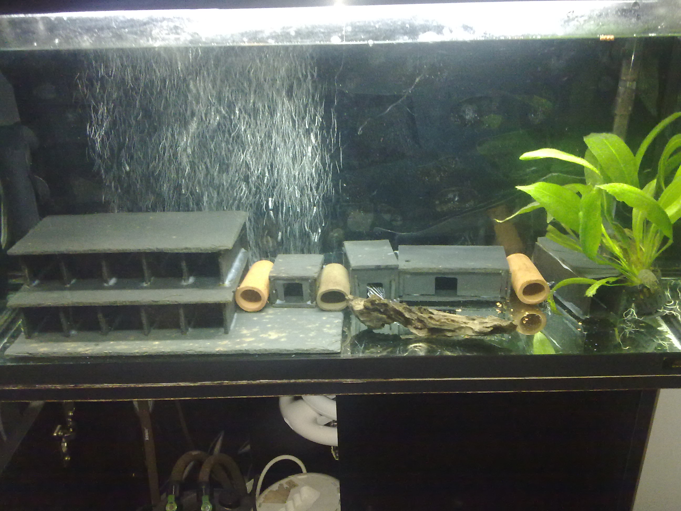maybe add in fine gravel and more diftwood and a powerhead for more waterflow