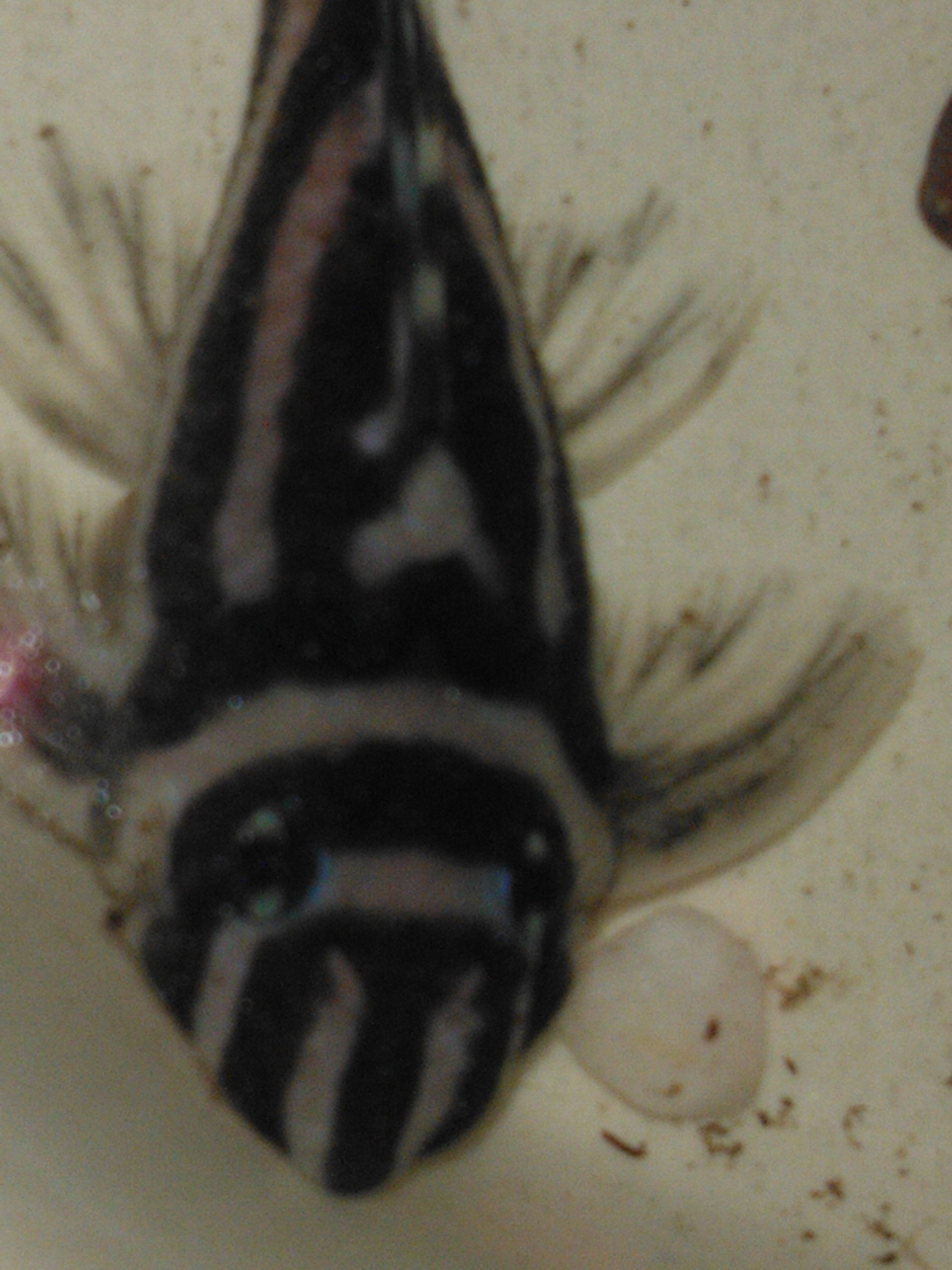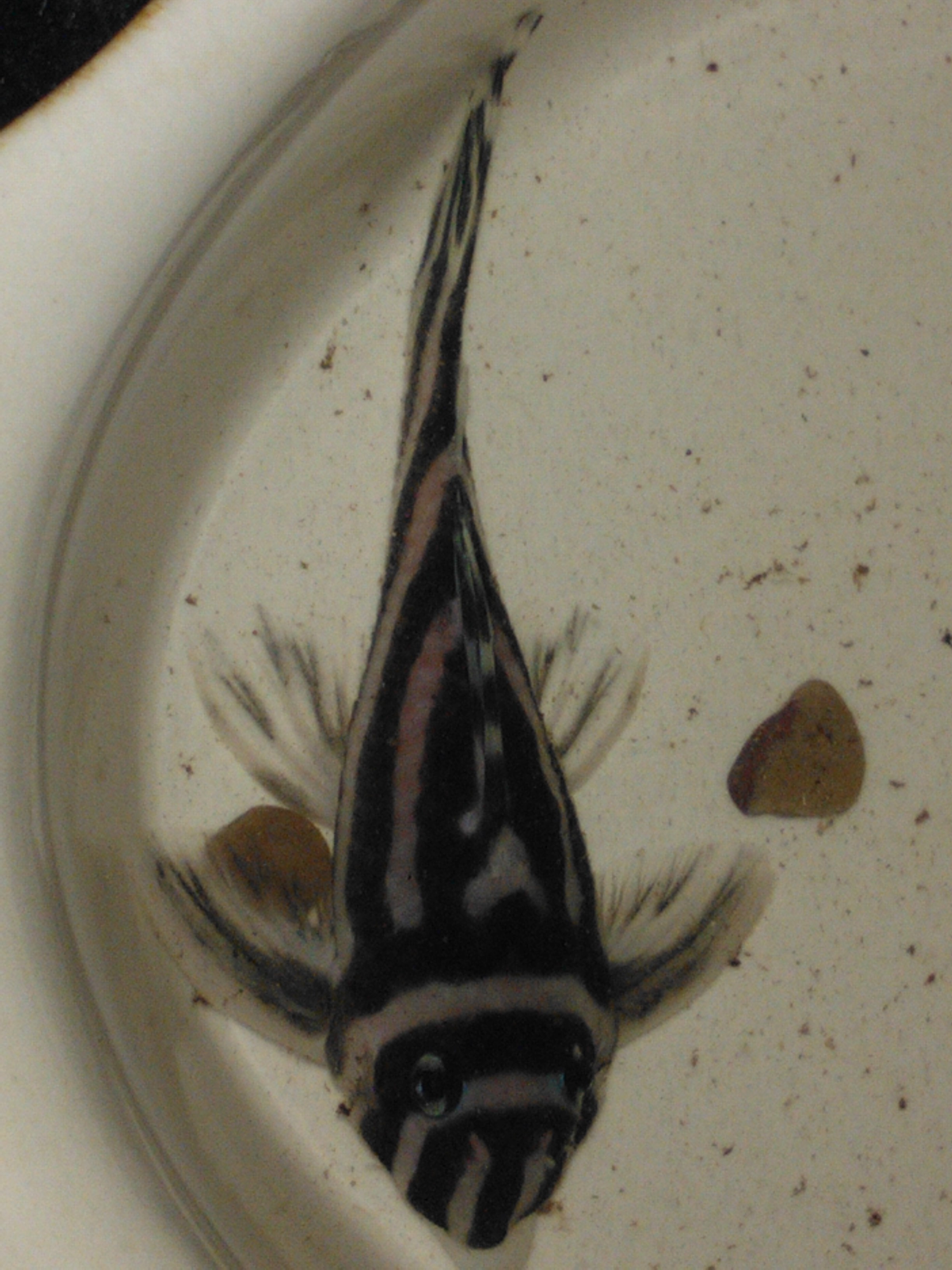 The Zeb is approx 3 inch in length, but we are unsure on the sex,please help !!!!!!!!!!!! as we do not know whether to add to our other group of zebs that consists of 2 males, x1 female and x2 juveniles