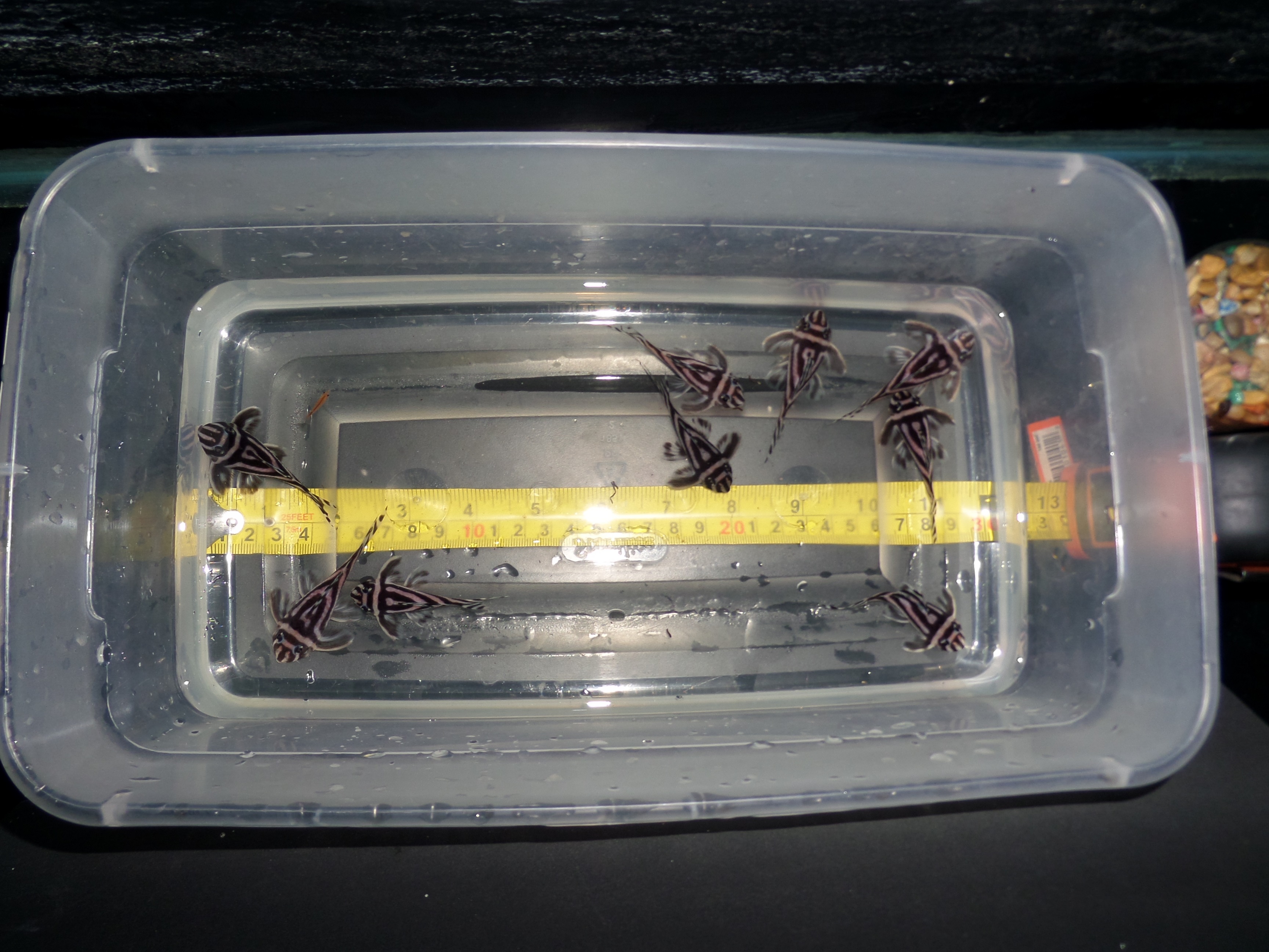 All fish over 2 inches, several 2.5+".  See yellow ruler in pics.  Born and raised in my tanks in local tap water.